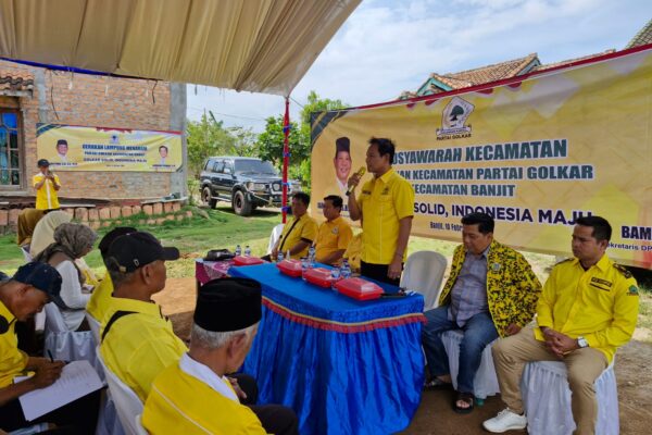 SUARAGEMPUR.COM | WAY KANAN – Partai Golkar Kecamatan Banjit menggelar Musyawarah Kecamatan (Muscam) pada Selasa, 10 Februari 2026. Kegiatan ini secara resmi dibuka oleh Ketua DPD Partai Golkar Kabupaten Way Kanan, Darlian Pone, sebagai bagian dari konsolidasi organisasi partai di tingkat kecamatan, Selasa (10/2/2026). Muscam dihadiri seluruh pemilik suara, yakni 19 Ketua Pimpinan Kampung se-Kecamatan…