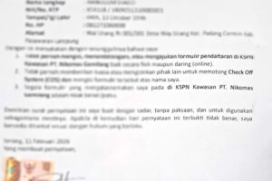 SUARAGEMPUR.COM | SERANG, 9 Februari 2026 – Federasi Serikat Pekerja Tekstil, Sandang, dan Kulit Konfederasi Serikat Pekerja Seluruh Indonesia (FSP TSK KSPSI) kembali menegaskan eksistensinya di Kabupaten Serang. Hal ini ditandai dengan diterbitkannya bukti pencatatan resmi Pimpinan Unit Kerja (PUK) FSP TSK KSPSI PT Lautan Baja Indonesia (LBI) serta pembaharuan kepengurusan PUK di PT EBT…