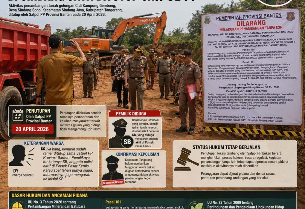 SUARAGEMPUR.COM| JAKARTA – Dewan Pimpinan Daerah (DPD) LSM Triga Nusantara Indonesia Banten dijadwalkan menggelar aksi unjuk rasa di depan kantor Komisi Pemberantasan Korupsi pada 21 April 2026. Aksi ini merupakan bentuk tekanan publik agar aparat penegak hukum segera mengusut dugaan praktik mafia tanah dan penguasaan aset negara di kawasan Situ Ranca Gede, Banten, Senin(20/4/2026). Aksi…