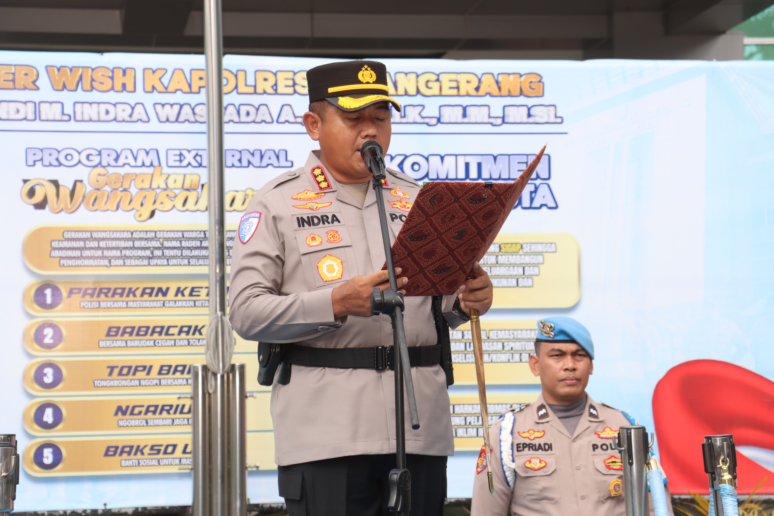 Kegiatan tersebut dihadiri oleh Pejabat Utama (PJU) Divpropam Mabes Polri Kombes Pol Rico Junaldy dan Kombes Pol Dedy Darmawansyah, Kabid Propam Polda Banten Kombes Pol Murwoto, serta melibatkan masyarakat setempat. Bakti sosial ini diisi dengan penyaluran bantuan paket sembako kepada warga sebagai bentuk kepedulian dan pengabdian Polri kepada masyarakat.