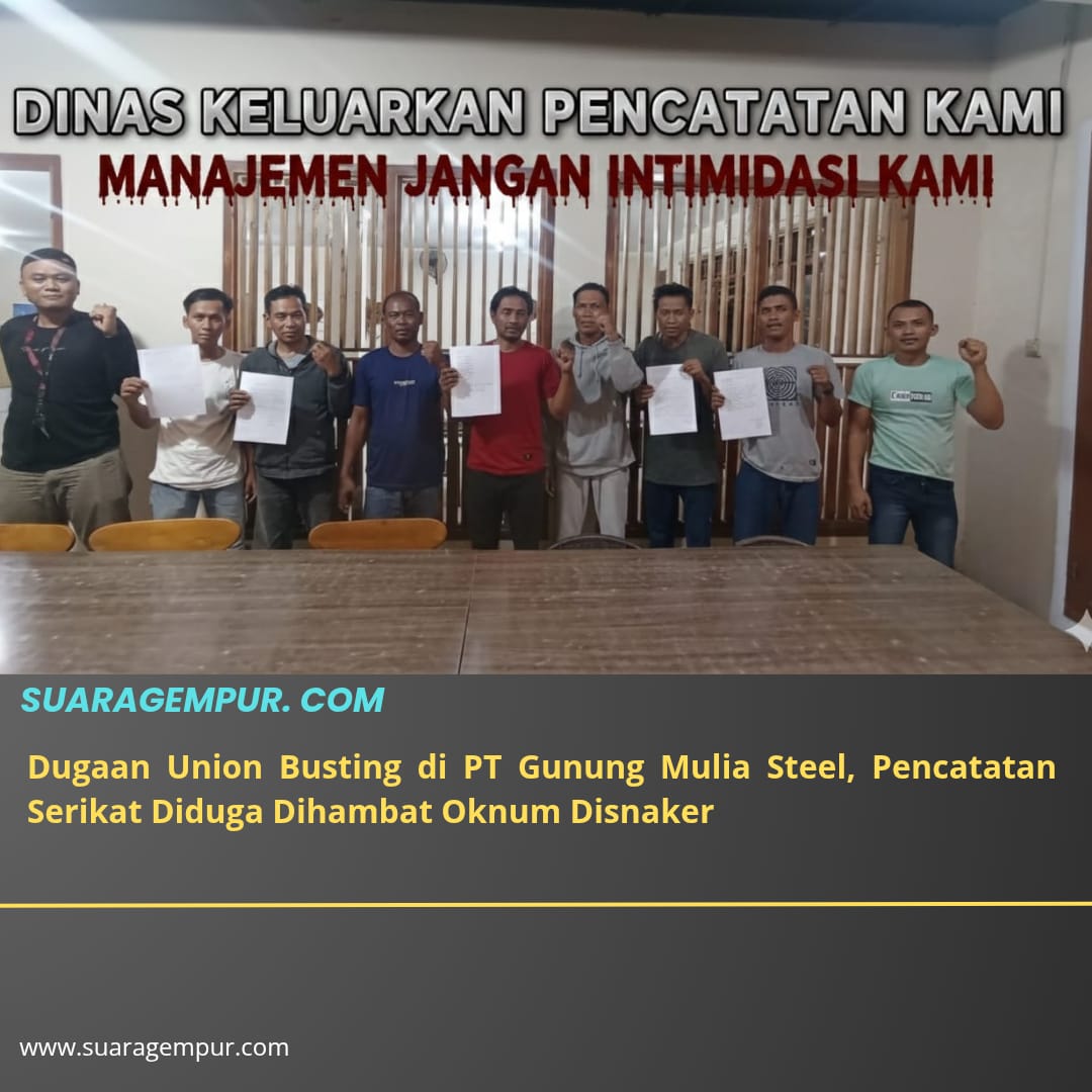 Dugaan Union Busting di PT Gunung Mulia Steel, Pencatatan Serikat Diduga Dihambat Oknum Disnaker