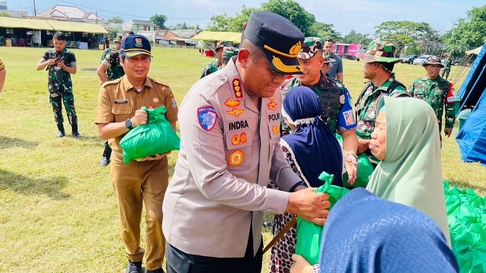 Selain kegiatan simulasi, acara juga diisi dengan penyerahan bantuan sosial kepada 100 kepala keluarga di sekitar lokasi latihan sebagai bentuk kepedulian terhadap masyarakat yang berpotensi terdampak banjir.