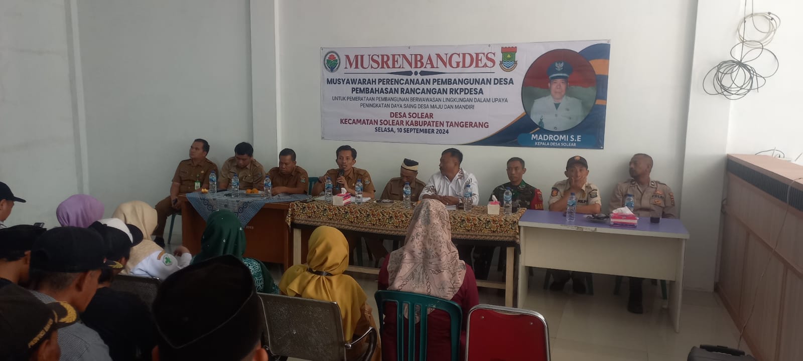 Kabupaten Tangerang || suaragempur.com – Rencana Pembangunan (Musrenbang) Desa Solear, Kecamatan Solear, Kabupaten Tangerang telah dilaksanakan pada Selasa, 10 September 2024 pukul 13.00 WIB. Acara yang mengangkat tema “Untuk Pemerataan Pembangunan Berwawasan Lingkungan Dalam Upaya Peningkatan Daya Saing Desa Maju dan Mandiri” ini berlangsung dengan lancar dan penuh semangat.