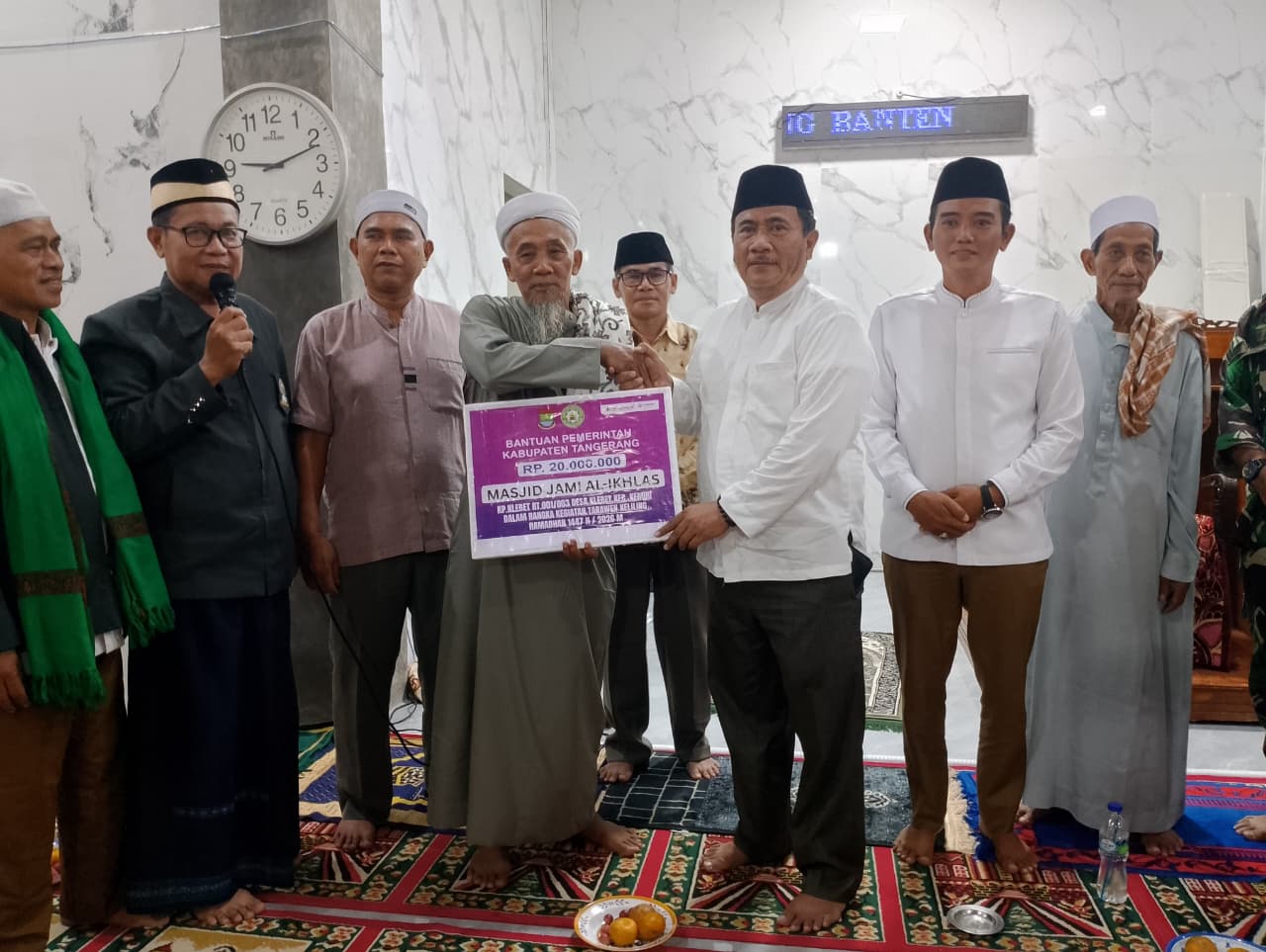 Sebagai bagian dari rangkaian kegiatan, Pemerintah Kabupaten Tangerang bersama Camat Kemiri menyerahkan bantuan stimulan sebesar Rp20.000.000 untuk kemakmuran Masjid Jami Al-Ikhlas. Bantuan tersebut diperuntukkan bagi peningkatan fasilitas ibadah dan mendukung kegiatan sosial keagamaan yang dikelola pengurus masjid.