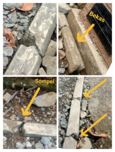 Lebih jauh, mutu material yang digunakan juga dipertanyakan. Terlihat jelas beberapa material, khususnya casteen, dalam kondisi rapuh dan banyak mengalami kerusakan seperti sompel. Hal ini mengindikasikan adanya pemilihan material berkualitas rendah demi mengejar margin keuntungan lebih besar. Tindakan seperti ini mencederai prinsip transparansi anggaran serta berpotensi merugikan publik dalam jangka panjang.