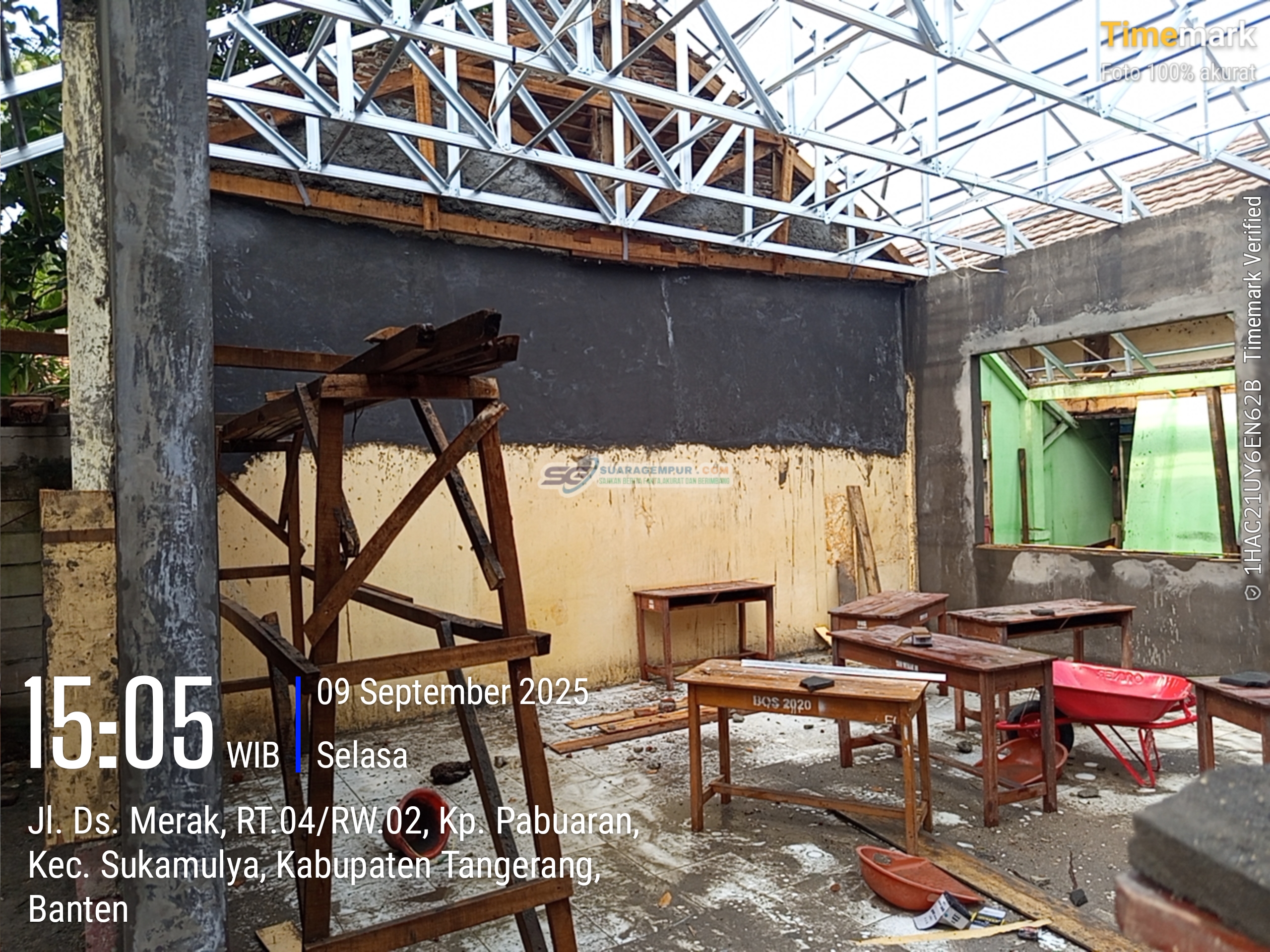 SUARAGEMPUR.COM | Tangerang – Proyek rehabilitasi ruang kelas di SDN Merak 3, Desa Merak, Kecamatan Sukamulya, Kabupaten Tangerang, menimbulkan tanda tanya. Pasalnya, material baja ringan jenis Kanal C75 yang digunakan untuk rangka atap tidak memiliki logo Standar Nasional Indonesia (SNI), meskipun biaya yang digelontorkan mencapai angka fantastis. Proyek ini diduga lebih mengarah pada pemborosan anggaran dari pada asas manfaat.