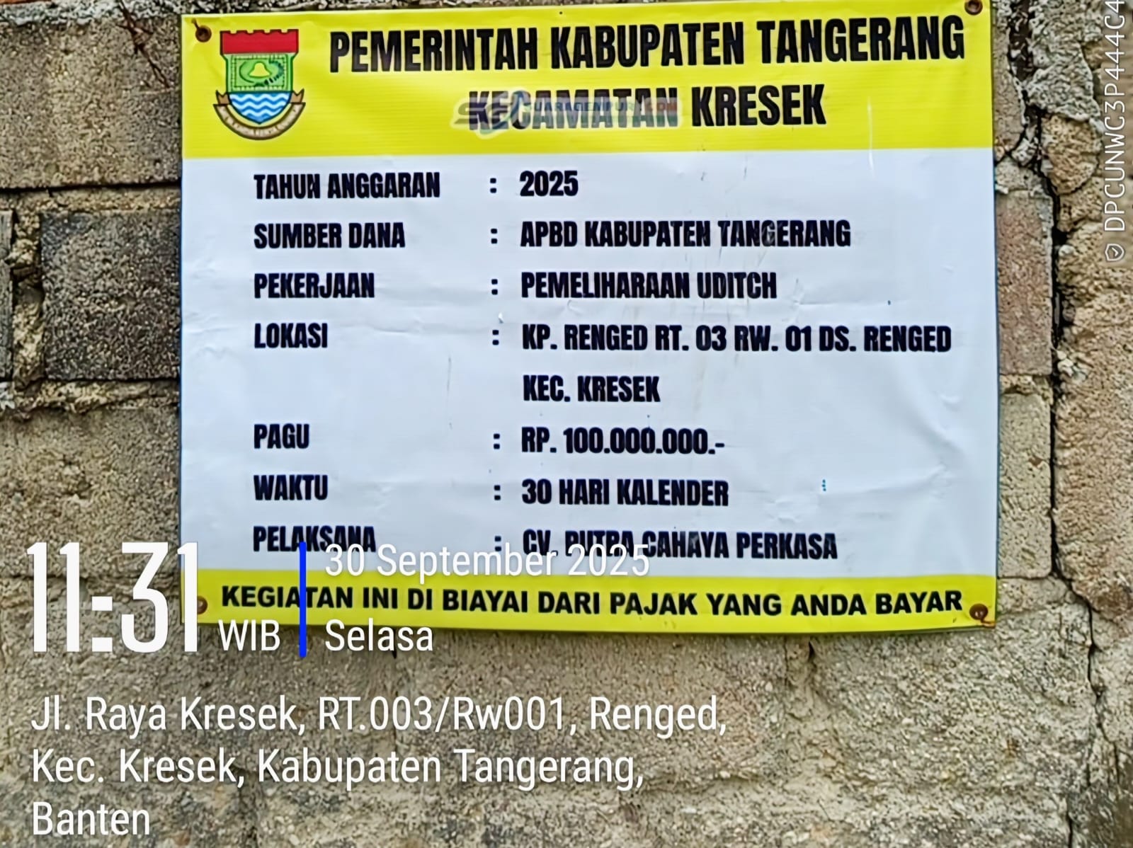 SUARAGEMPUR.COM | TANGERANG – Pelaksanaan proyek pemeliharaan saluran U-ditch di Kampung Renged, Desa Renged, Kecamatan Kresek, Kabupaten Tangerang, diduga kuat tidak sesuai dengan spesifikasi teknis. Kondisi pekerjaan yang dinilai amburadul ini membuat Pemerintah Kecamatan Kresek bertindak tegas, bahkan sudah melayangkan surat resmi hingga tiga kali kepada pihak pelaksana, CV. Putra Cahaya Perkasa.